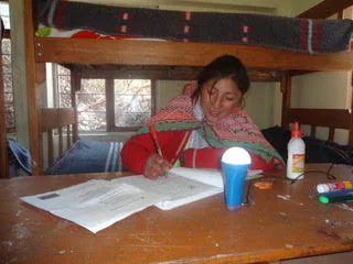 Dit tafereel deed me denken aan een andere foto die ik nog niet zo lang geleden van mijn dochter kreeg. Zij fotografeerde haar zusje in Perú ook tijdens het maken van haar huiswerk in wat primitievere omstandigheden.