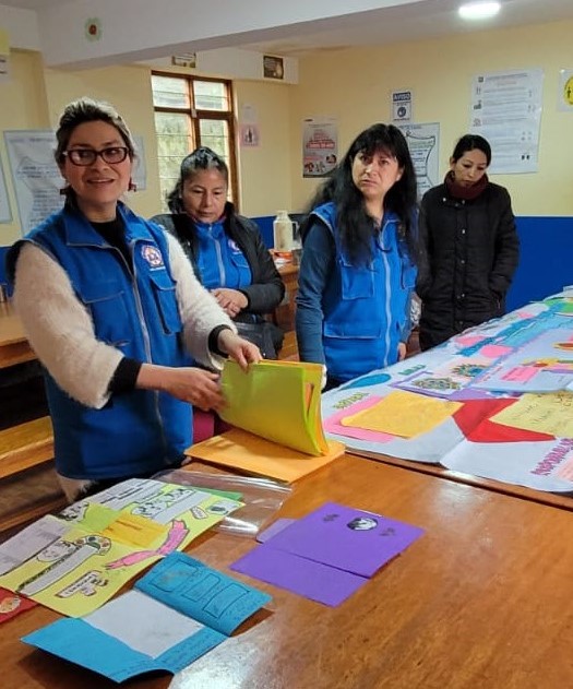 Tineke bericht over de afsluiting van een bijscholingstraject op de school in Patacancha. Vol trots laten de deelnemers zien wat er is bereikt.