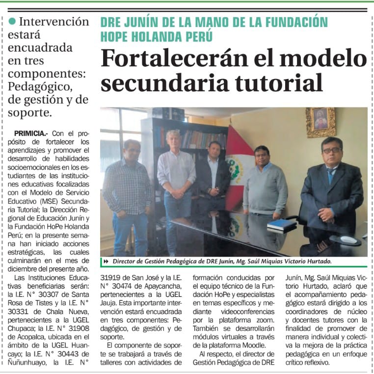 Nieuw contract met het Peruaans Ministerie van Onderwijs